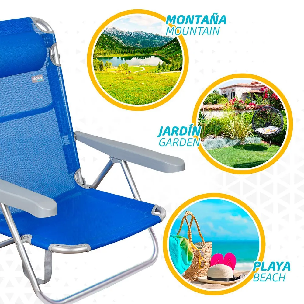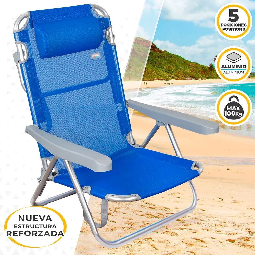 Reinforced aluminum structure with tubes up to 2 cm and anti-tip stops on the legs.