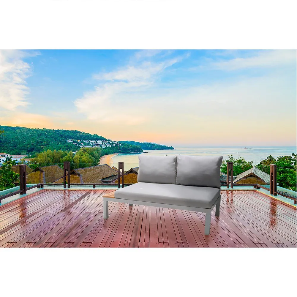 Sofa 2 Seats Bergamo With Side Table In Aluminum And Eucalyptus Wood Fsc Imitation Teka (138,20×76,6x73cm). Cushion In Gray.