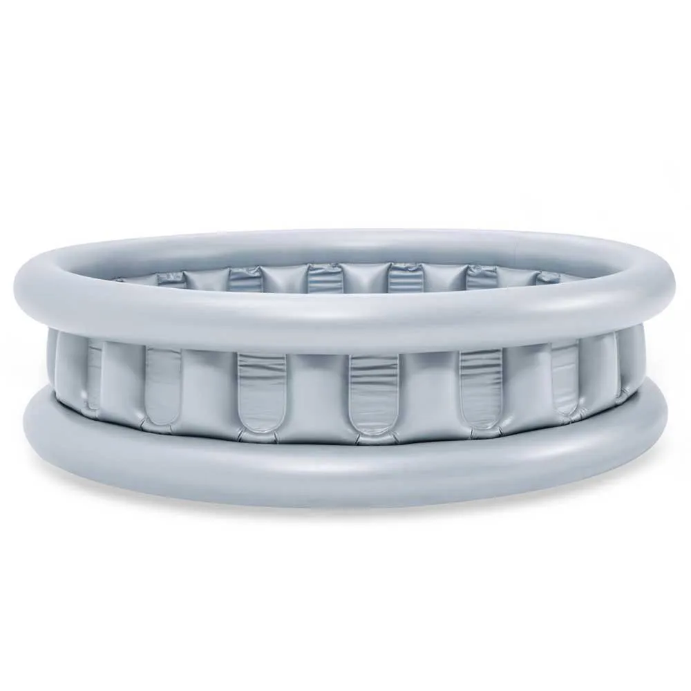 Designed to get kids moving, grooving and out of the house, this H2OGO!® Space Ship Pool is quality-tested and puts the focus back on fun! The Spaceship Pool comes in a truly unique design in the shape of a silver flying saucer! The padded exterior liner even resembles the ports and flukes of a 1950’s style Hollywood flying saucer film prop! Kids can have an out of this world fun time splashing about in the pool on sunny day with friends. What’s more, the pool is easy to set up – simply inflate the 3 air chambers using an air pump and fill with water. Splashing in the sun has never been more fun than with the Space Ship Pool.