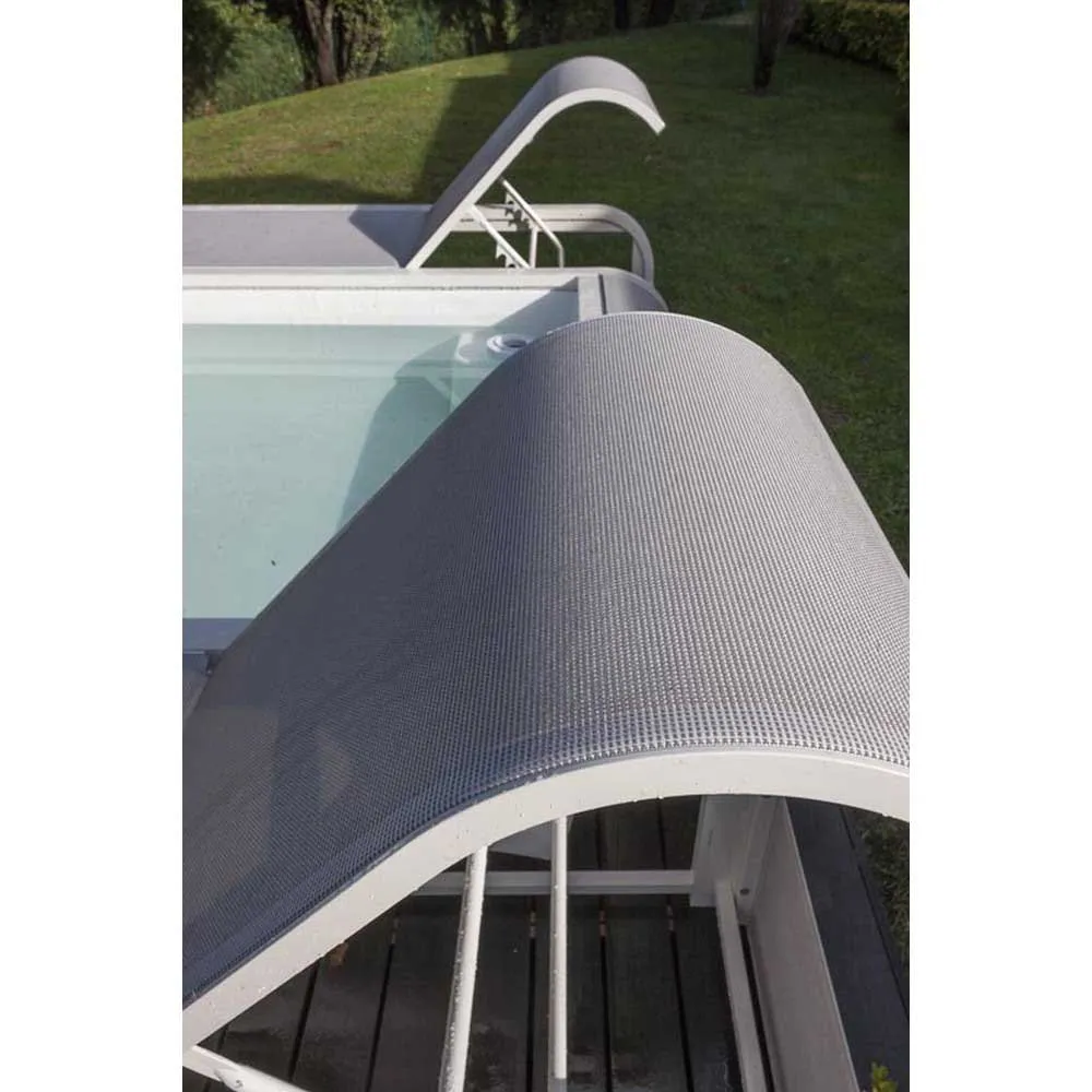 Mariposa is a small pool that simulates a fragile white butterfly which can be found on a surface or a terrace. It is easy to install and ready to use in less than an hour and without any type of construction. The wings of Mariposa are comfortable sun beds with adjustable low back support with different positions.