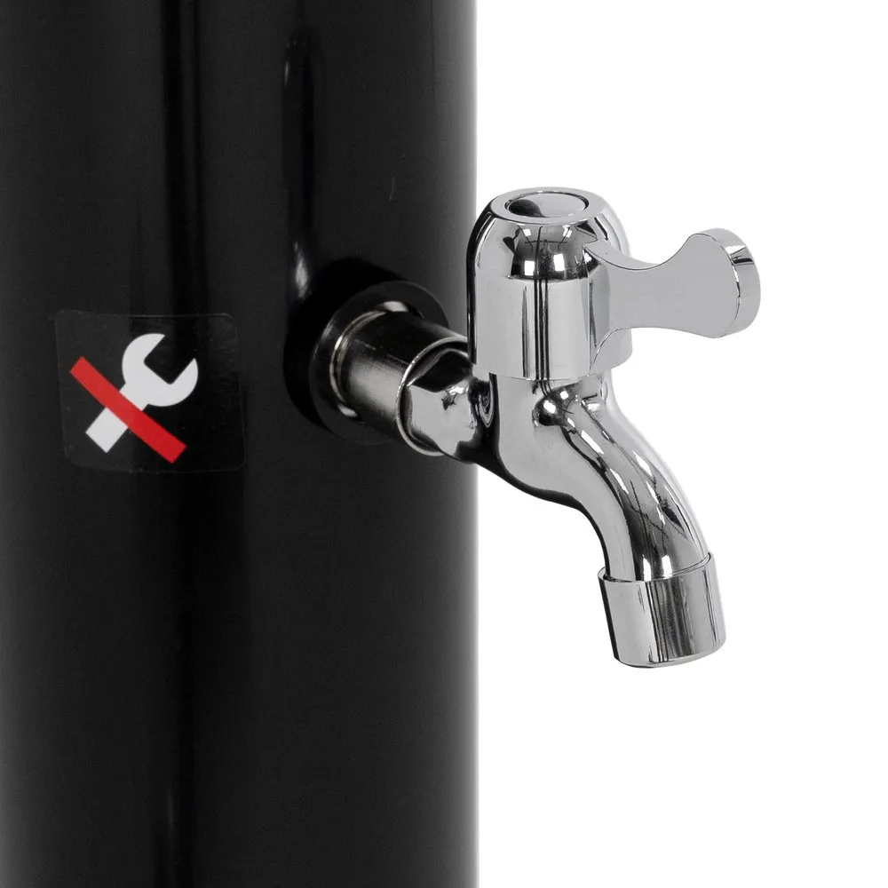 With the single-lever mixer, you can mix the stored warm water with colder water from the hose to your desired temperature. The lower valve can be used as a foot shower, so you can wash your upper body and feet at the same time. The modern design makes the solar shower look elegant and is at the same time corrosion-resistant, stable and durable.
