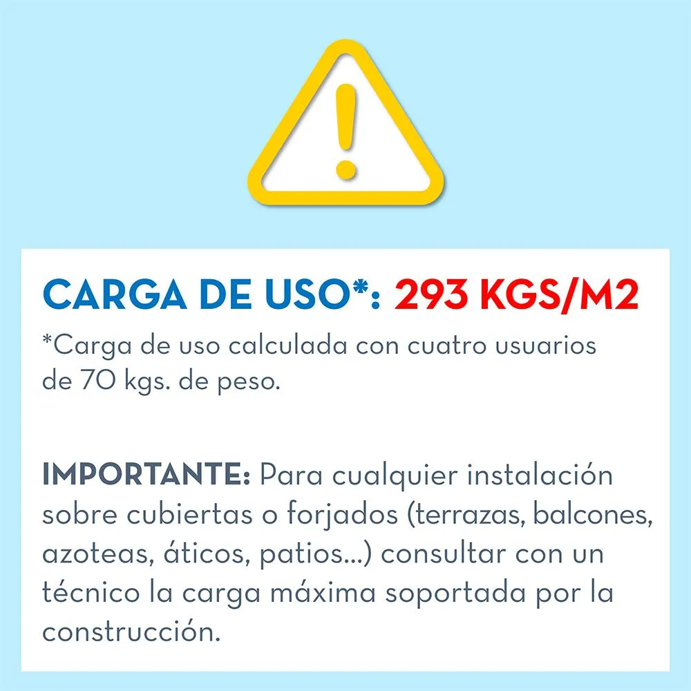 – INTEX Greywood Deluxe inflatable spa for 6 people, capacity for 1089 litres, dimensions of exterior diameter:216 cm, interior diameter:165 cm and height:71 cm – Bubble massage with 170 air outlets, grey design with wood effect, made with FiberTech technology – It has a control panel with removable wireless charging console, water heater (10º – 40º) and filter of 1741 litres /hour – Includes insulating cover with safety catches, mat, 2 x S1 cartridges, floating chlorine dispenser, 2 Premium headrests, LED light and transport bag – To increase the durability of the jacuzzi, it incorporates an anti-limescale system that treats the hardness of the water, improving its purity and softness.