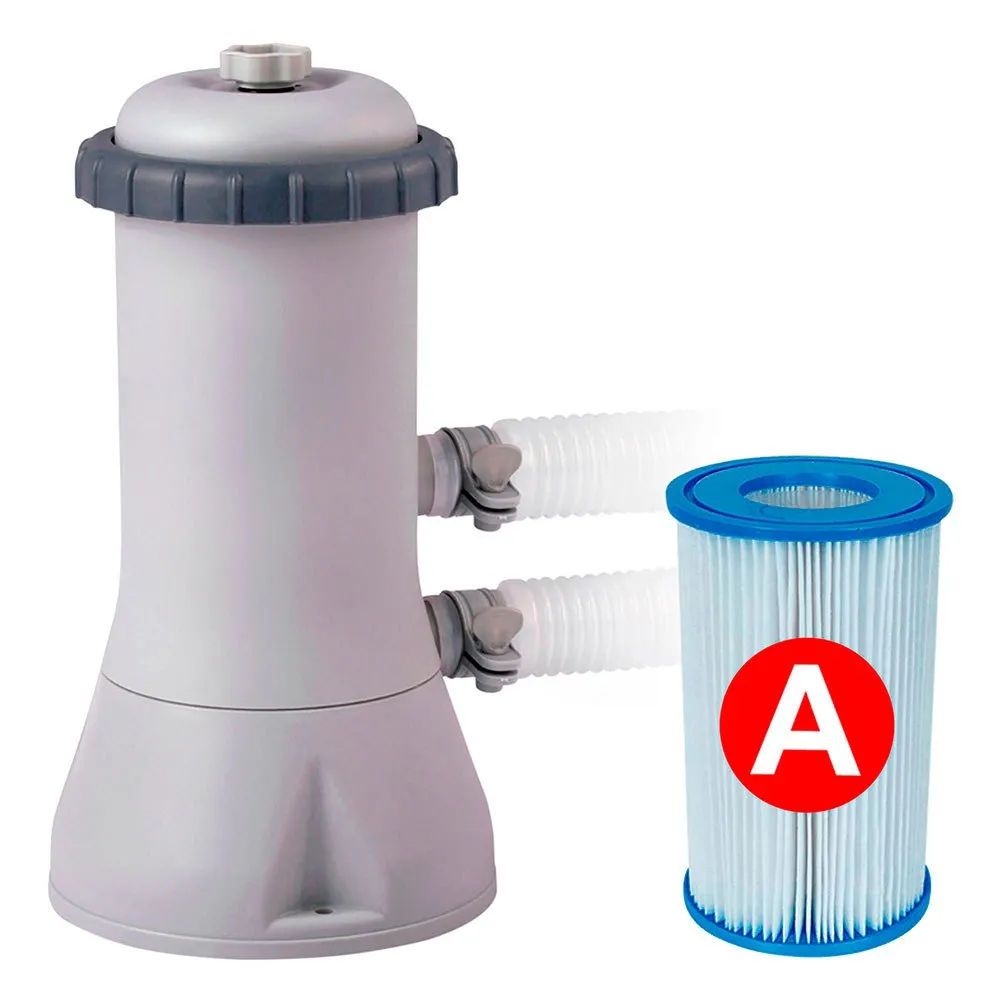 MAIN CHARACTERISTICS Above ground round shaped swimming pool with a capacity for 12,706 litres and a height of 1,07 metres and with cartridge filter system with Type A filter included.