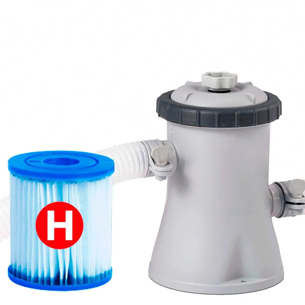 ACCESORIES INCLUDED The swimming pool includes a filter with Type H cartridge with filtration capacity of 1,250 litres/hour with innovative Hydro Aeration Technology system to improve the quality and purity of the water.