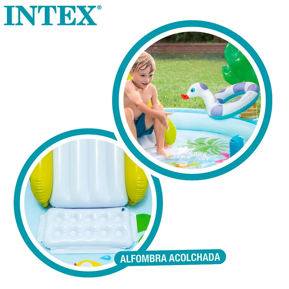 Intex children´s play centre with two swimming pools of 180 and 132 litres respectively and a crocodile slide with cushioned base.