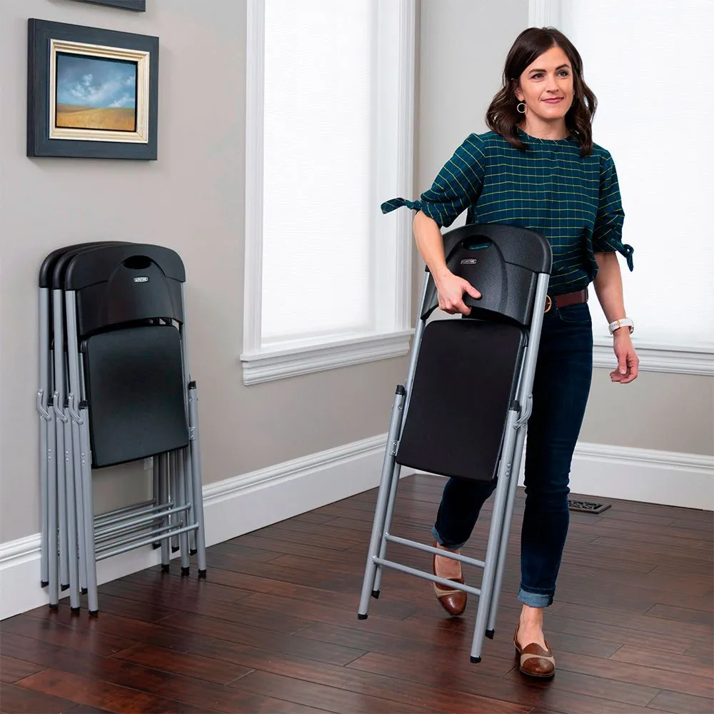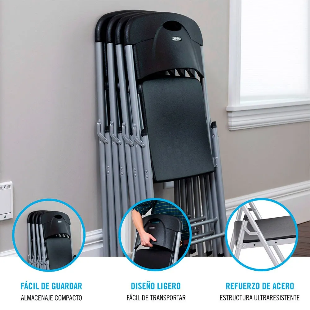 Lifetime black plastic folding chair, lightweight and ultra-resistant.