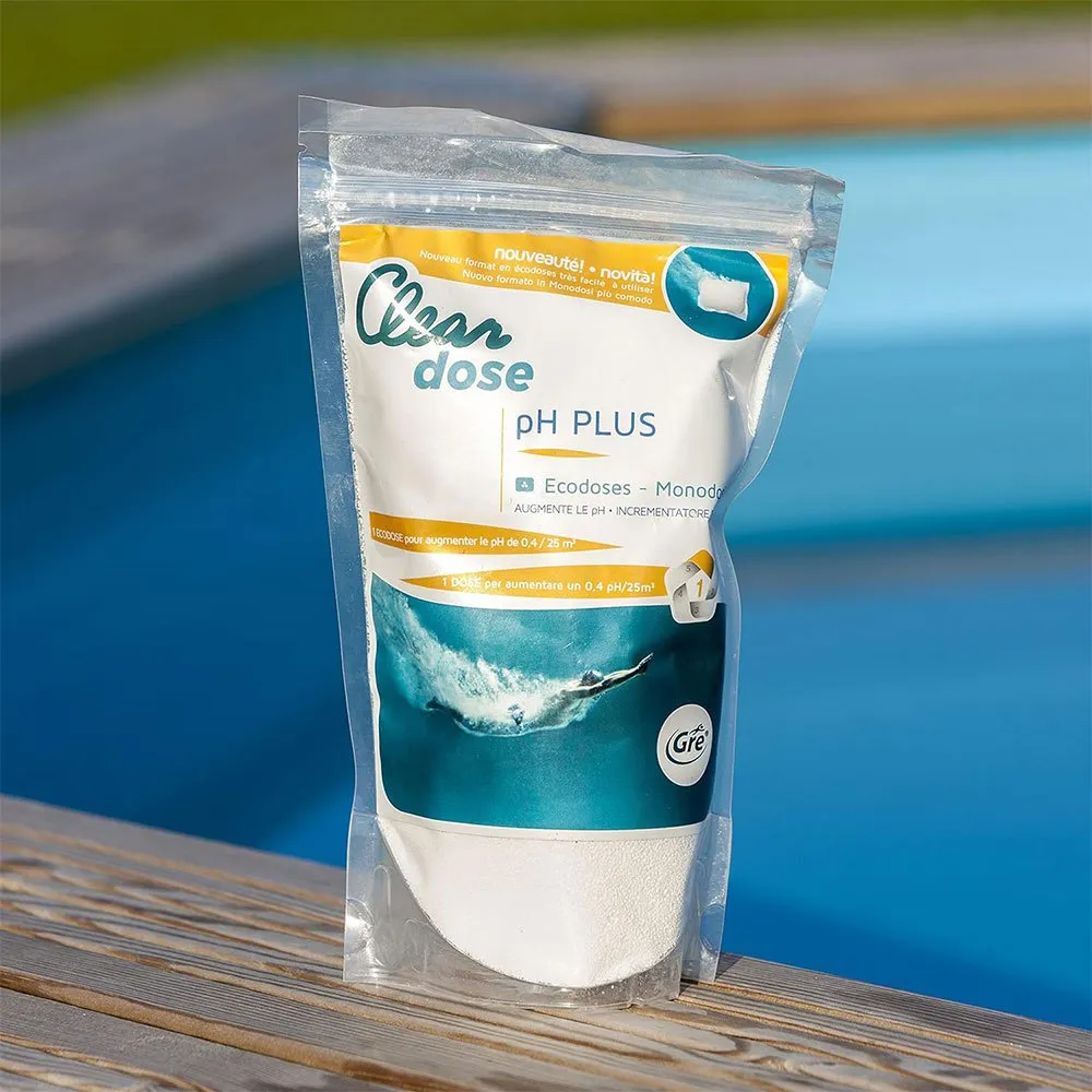 – 1 dose per 25 m³ to increase the pH by 0.4
