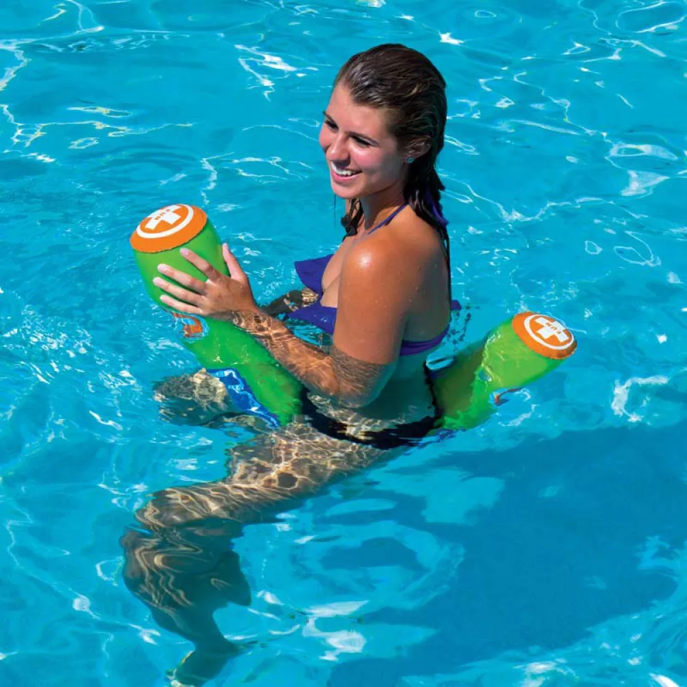 WOW is always trying to do something different, even when it comes to your standard pool float. The WOW pool float comes with a built-in pillow and body hugging side chamber. The open coil construction allows the water to massage your back while you relax in your favorite body of water. This float is lightweight and durable. When deflated it is small enough to fit in your purse or handbag, but when inflated it is large enough to be used by anyone up to 250lbs and 75″ tall.